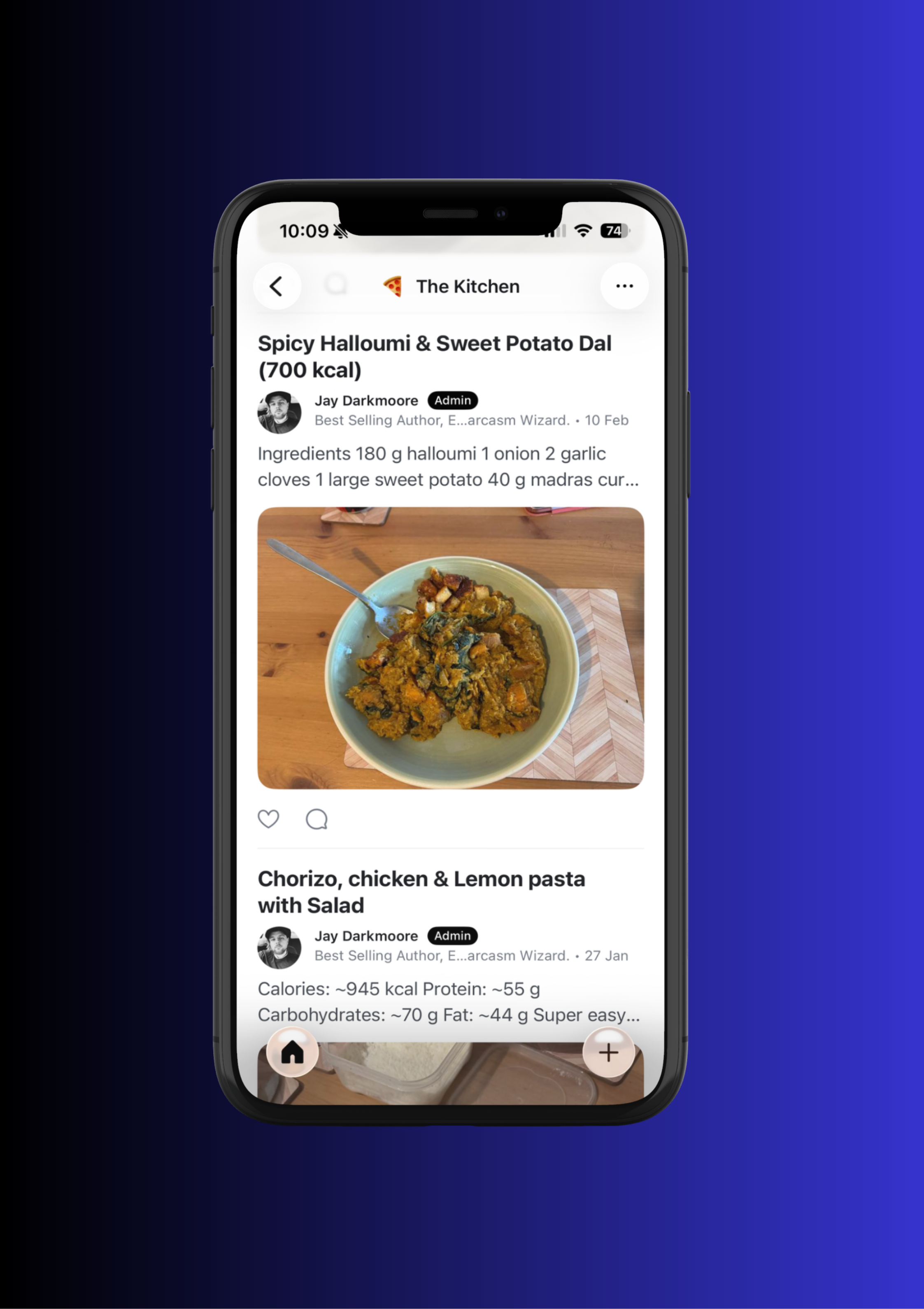 Diet support. Dedicated ‘Kitchen’ space for meal prep ideas with calories and macros.