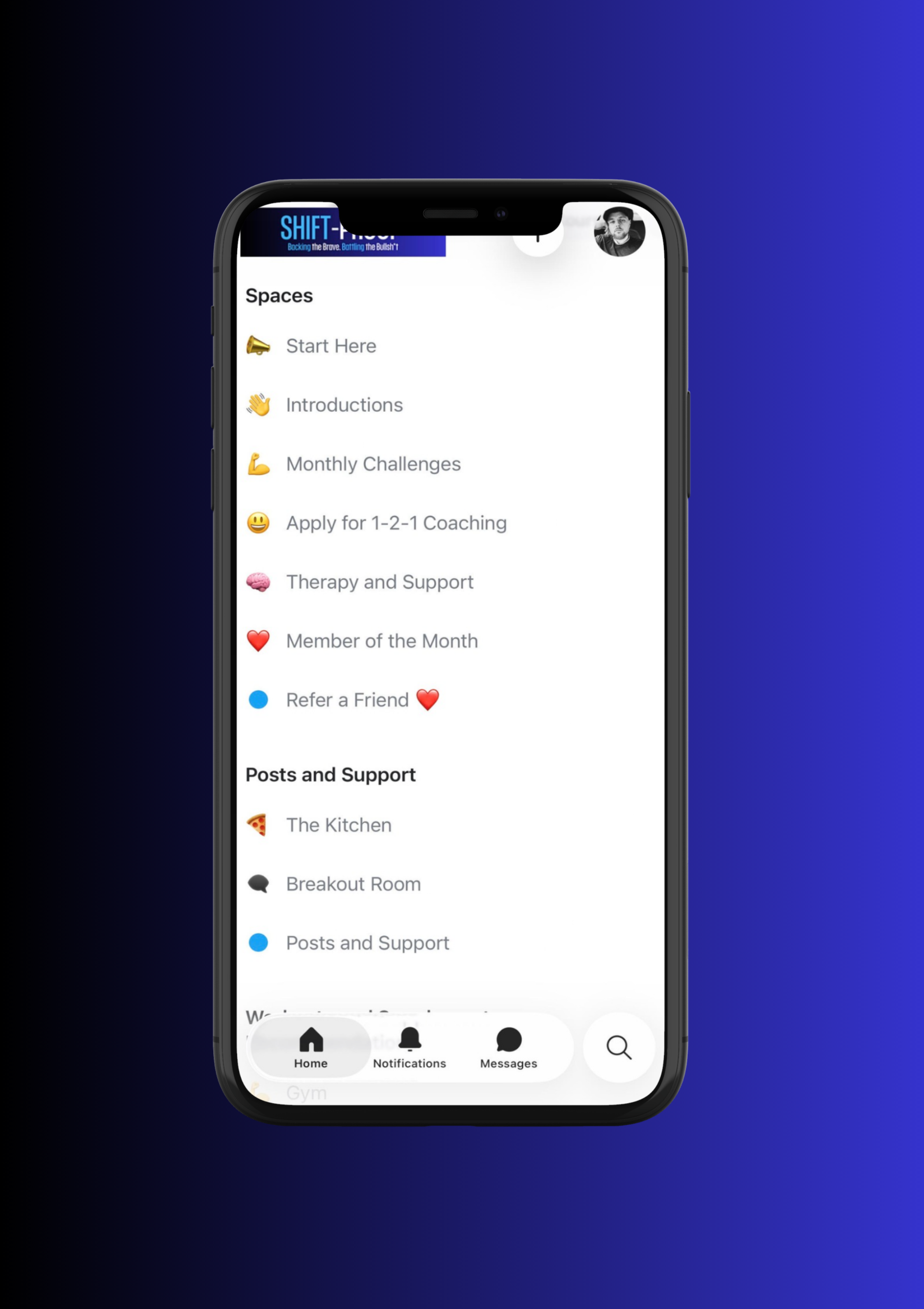 • Seven dedicated community spaces, ranging from a Breakout Room, Monthly Challenges, Posts and Support, and more.